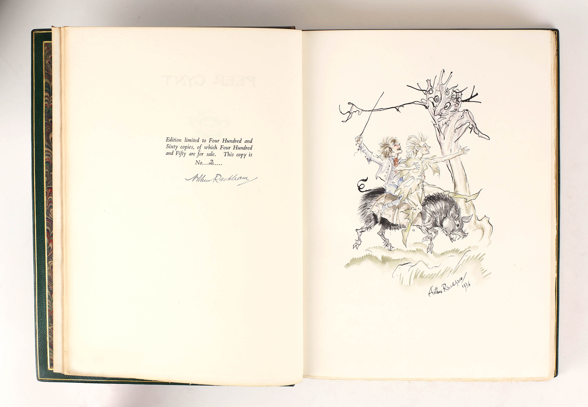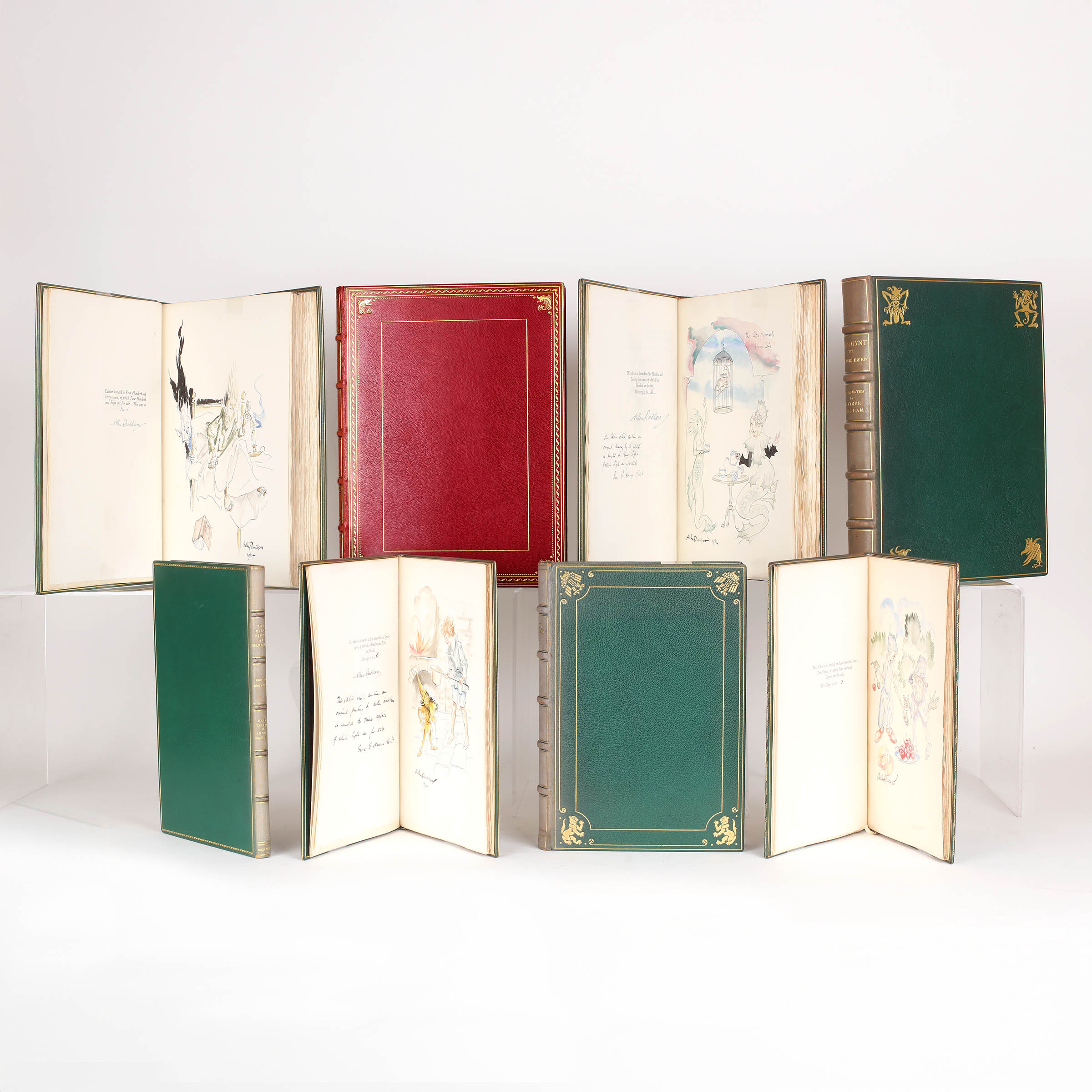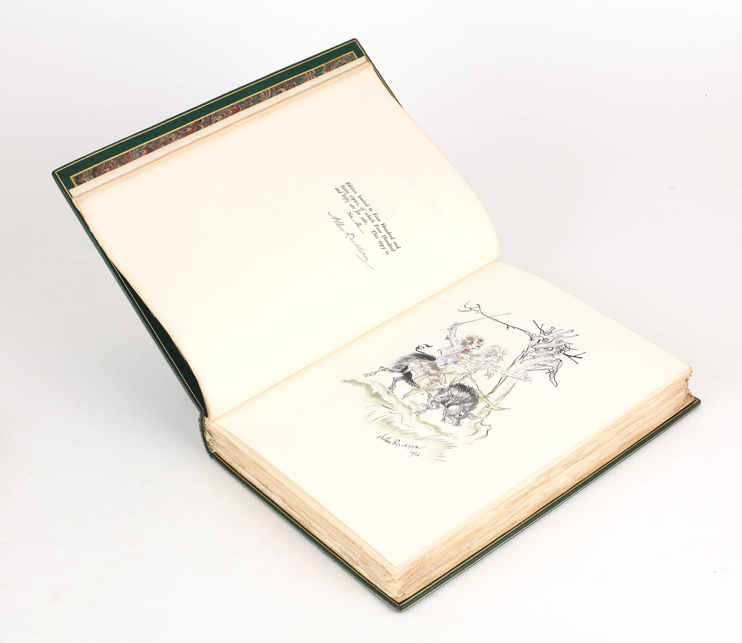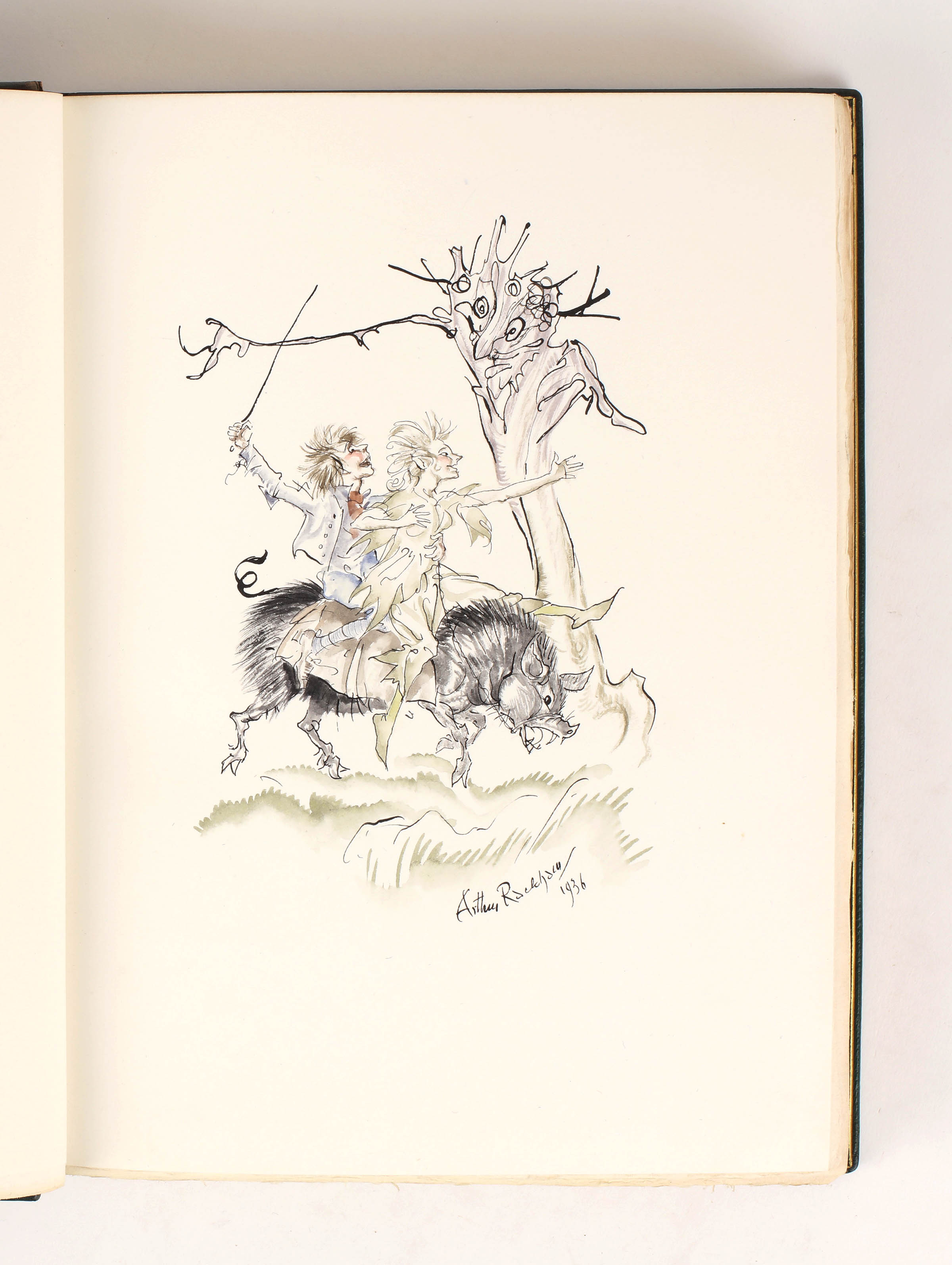 Together eight volumes, each one of nine special copies, bound for the publisher in full morrocco by Sangorski & Sutcliffe and with a full page original watercolour by Rackham. Raised bands and gilt titles to the spine and gilt ruled borders and decoration to the covers. Top edges gilt, others uncut. Each watercolour is signed by Rackham and each book separately signed under the limitation. Text on hand made paper, with numerous tipped in plates to each volume. A superb set in near fine condition, with the spines uniformly faded and the slightest trace of wear to the spine ends, but overall present very well indeed.