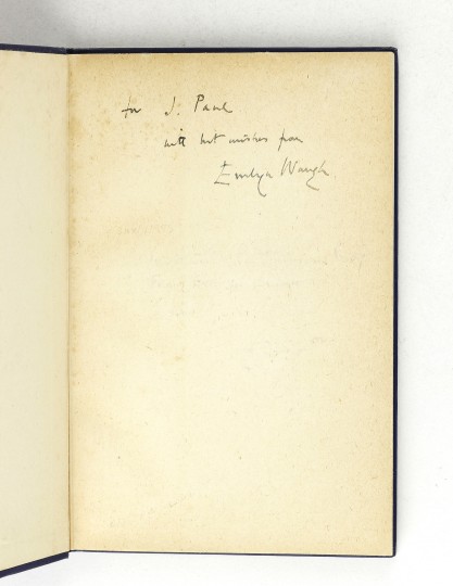 First edition. Original blue cloth in pictorial dustwrapper. Author's presentation copy, inscribed on the endpaper, "For J.Paul/ with best wishes from / Evelyn Waugh". Dustwrapper designed by John Piper, and the image is repeated as the frontis. A very good copy indeed in a very good dustwrapper, which has just minor rubbing to the corners.