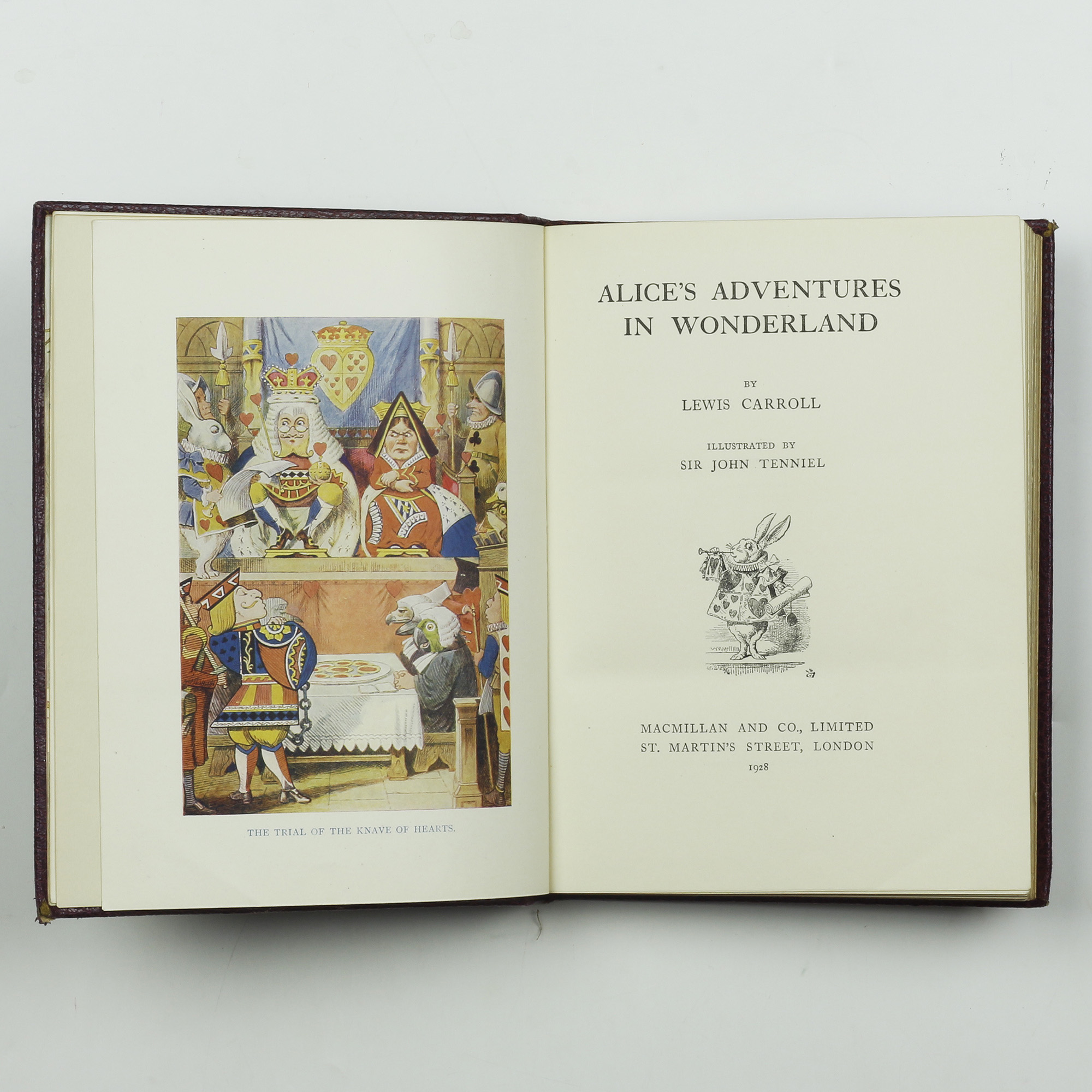 Deluxe issue, in publisher's burgundy leather binding, gilt lettering and all edges gilt. Sixteen colour plates by John Tenniel, as well as lots of line drawings. A very good copy indeed, corners with some rubbing.
