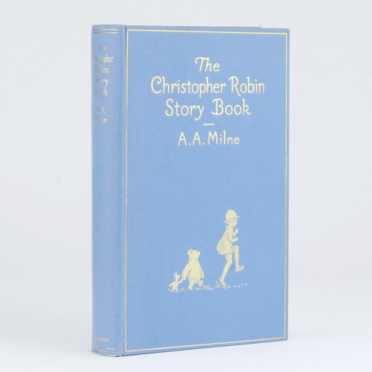First combined edition of Milne's children's books. 8vo. Blue cloth with gilt lettering and gilt vignettes of Christopher Robin, Winnie and Piglet, in original pictorial dustwrapper. Pictorial endpapers printed in blue and lots of line drawings by E.H. Shepard. A very good copy. This copy has it's rare pictorial dustwrapper, with new colour pictures by Shepard. The wrapper is in very good condition, clean and attractive with a small chip to the upper corner.