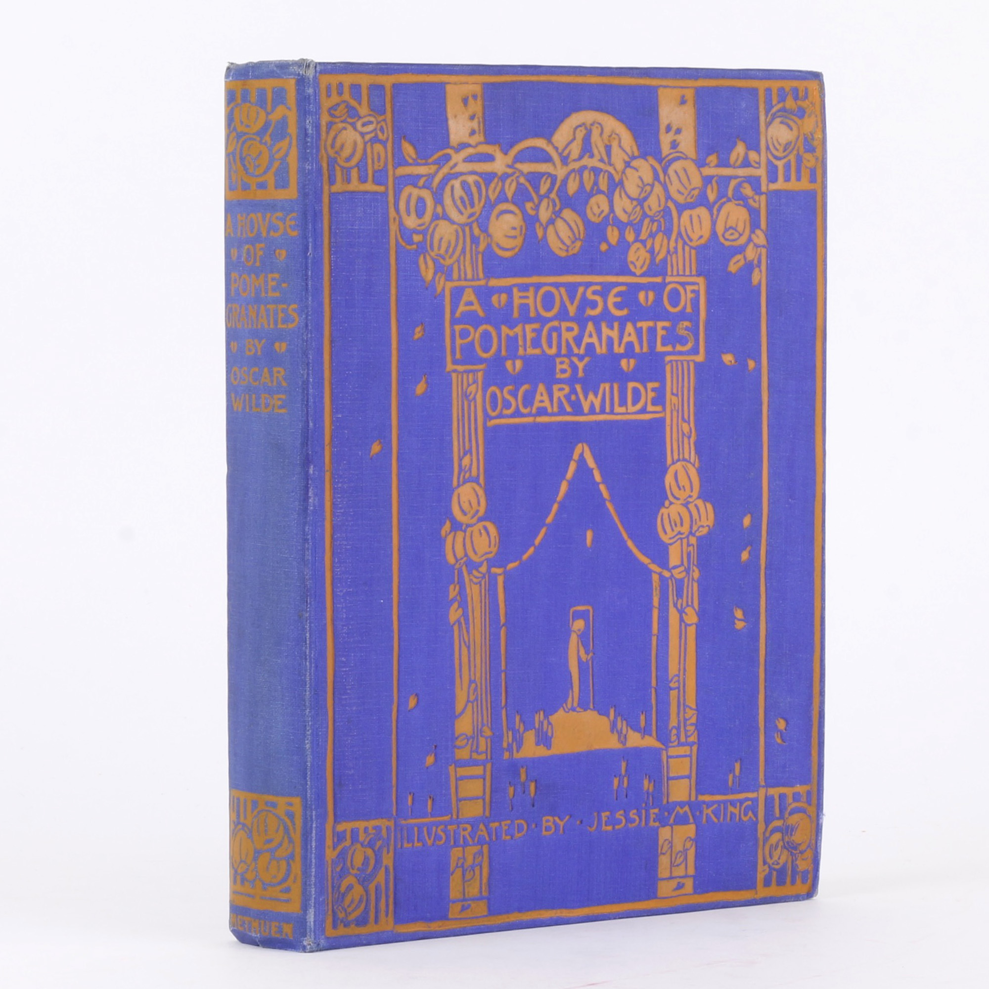 First edition illustrated by Jessie M. King. 4to. Royal blue cloth covers with elaborate design in orange by JMK. Top edge gilt. Signed by Jessie M King on lower plate mount at page 2. Pictorial endpapers with a King design printed in striking silver. The sixteen colour plates are very striking, some in bold, bright colours and others in soft pastel shades. A very good copy indeed, some light foxing and occasional marks to the pages.