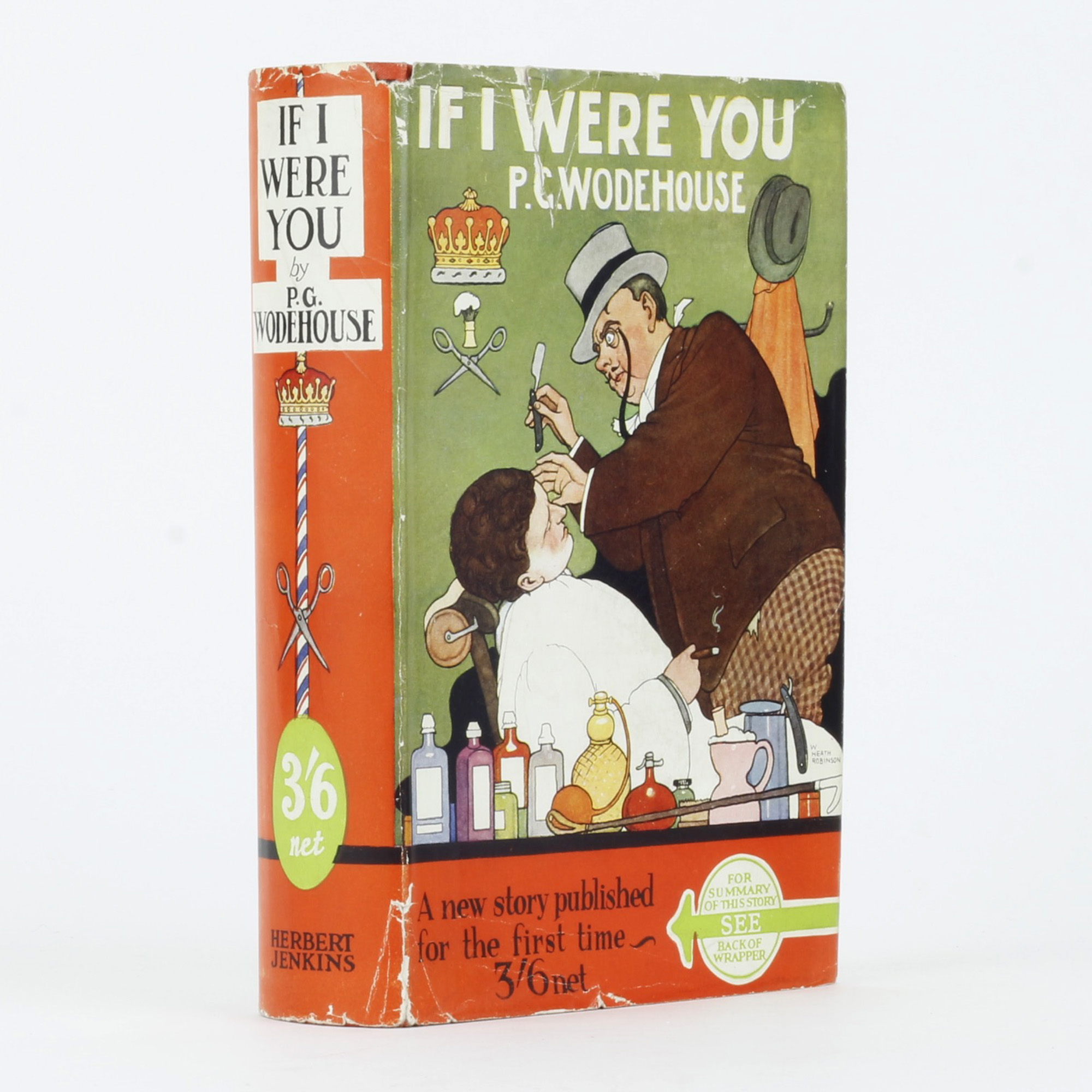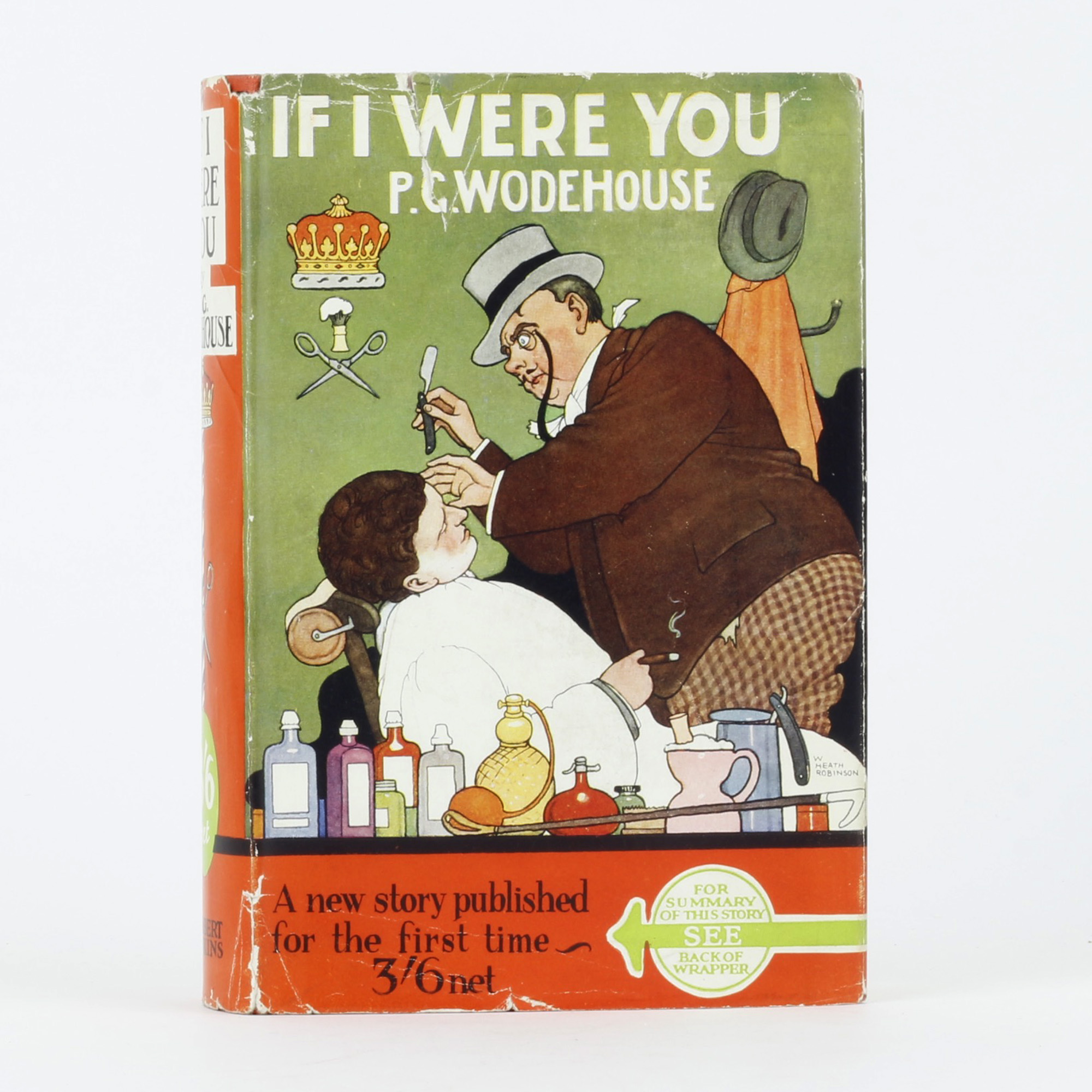 First UK edition. Original orange cloth lettered in black, in pictorial dustwrapper with a design by William Heath Robinson. A fine copy in a very good dustwrapper indeed, with a couple of short closed tears reinforced and some wear to the edges, but still very bright and clean.